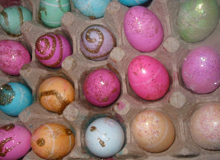 So what the heck is "Eggs on the golden rod"? it's a fantastic, simple meal that gets rid of those extra Easter eggs, and left over ham. My mother made this every year right after Easter. Above are our leftover Easter eggs. You can't tell from the picture , but they are what a farmer would call a pee wee egg. Even a chicken has to learn by starting out small. They are so cute and just a mouth full.